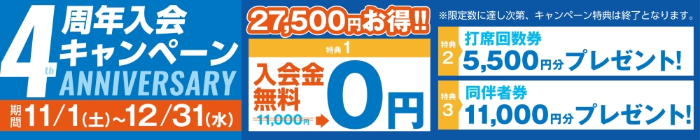 会員様の打席料550円(税込)×2コマ分+同伴者1,100円(税込)×1人分×2コマ分=3,300円(税込)